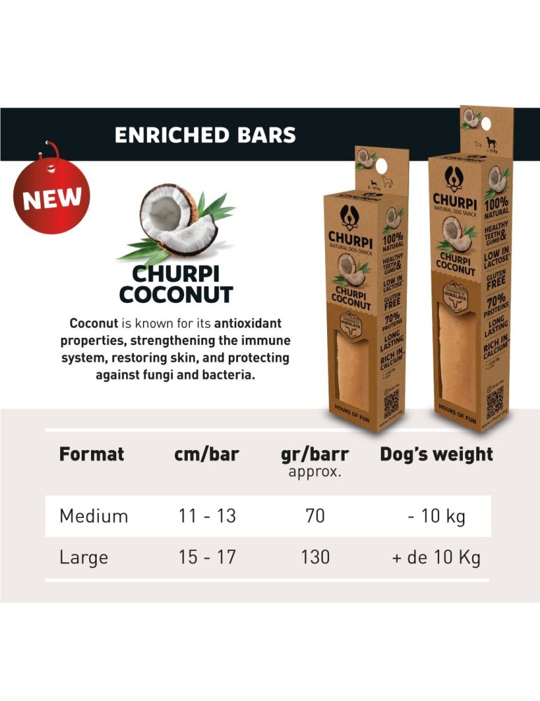 Estas barritas son hipoalergénicas y están enriquecidas con coco, con todos los beneficios que ello supone: aporte extra antioxidante, multivitamínico y antibacteriano. Poseen además todas las propiedades nutricionales de las barritas originales.